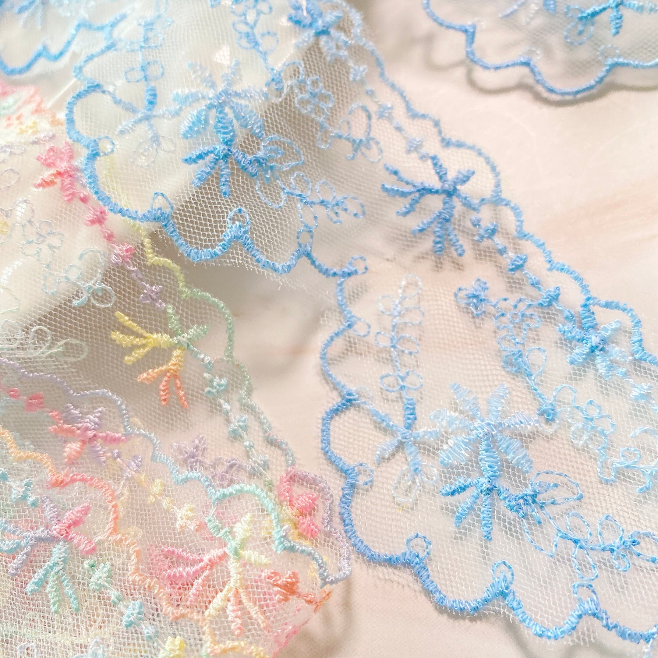 NEW color★50cm 85円★ 約44mm幅 パステルカラースレース ブルー&レインボー グラデーション レース