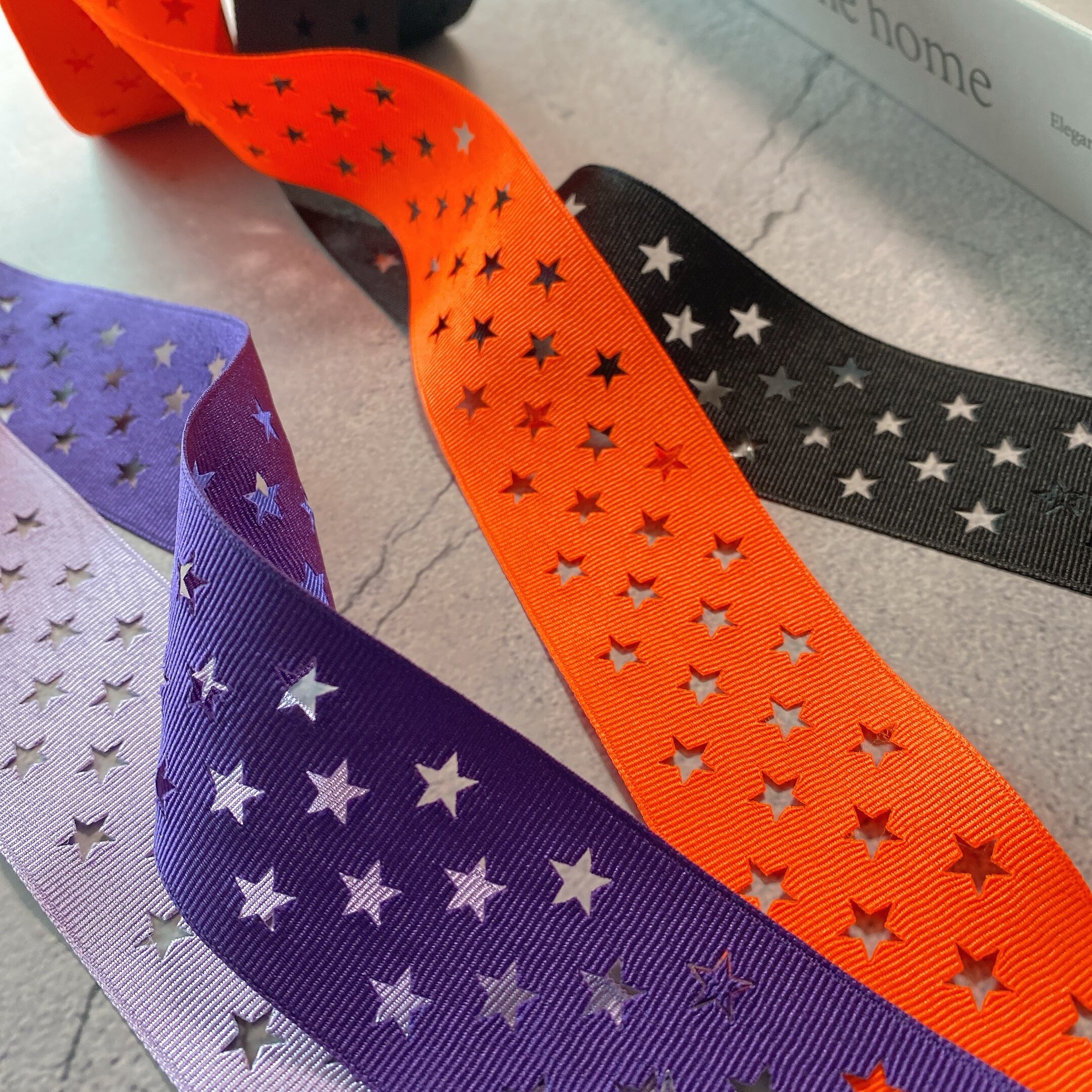 40mm幅 星型抜き グログランリボン 韓国リボン ハロウィンにも☆