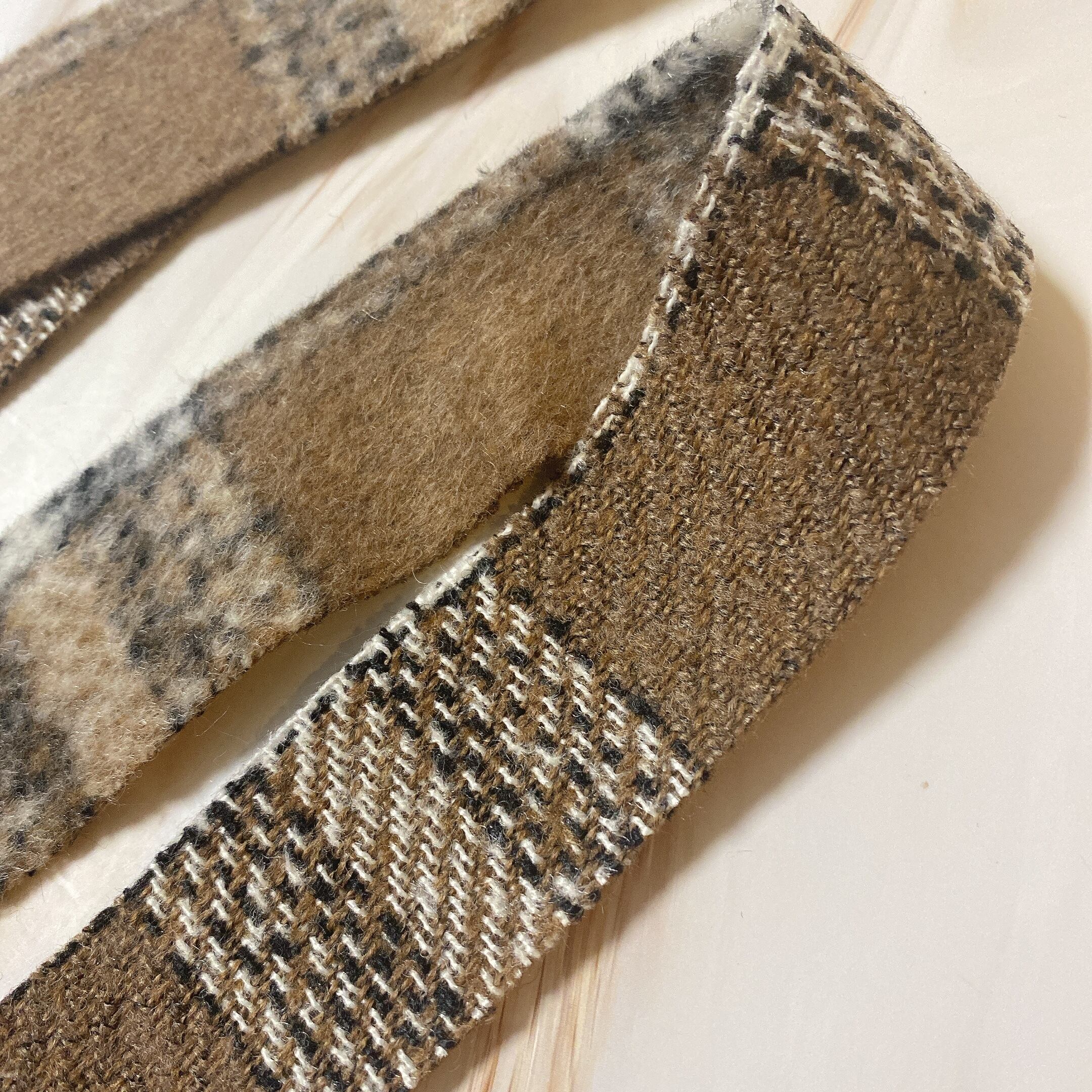 ツートンブロック ブラウン系 38mm幅 シャギーニットリボン