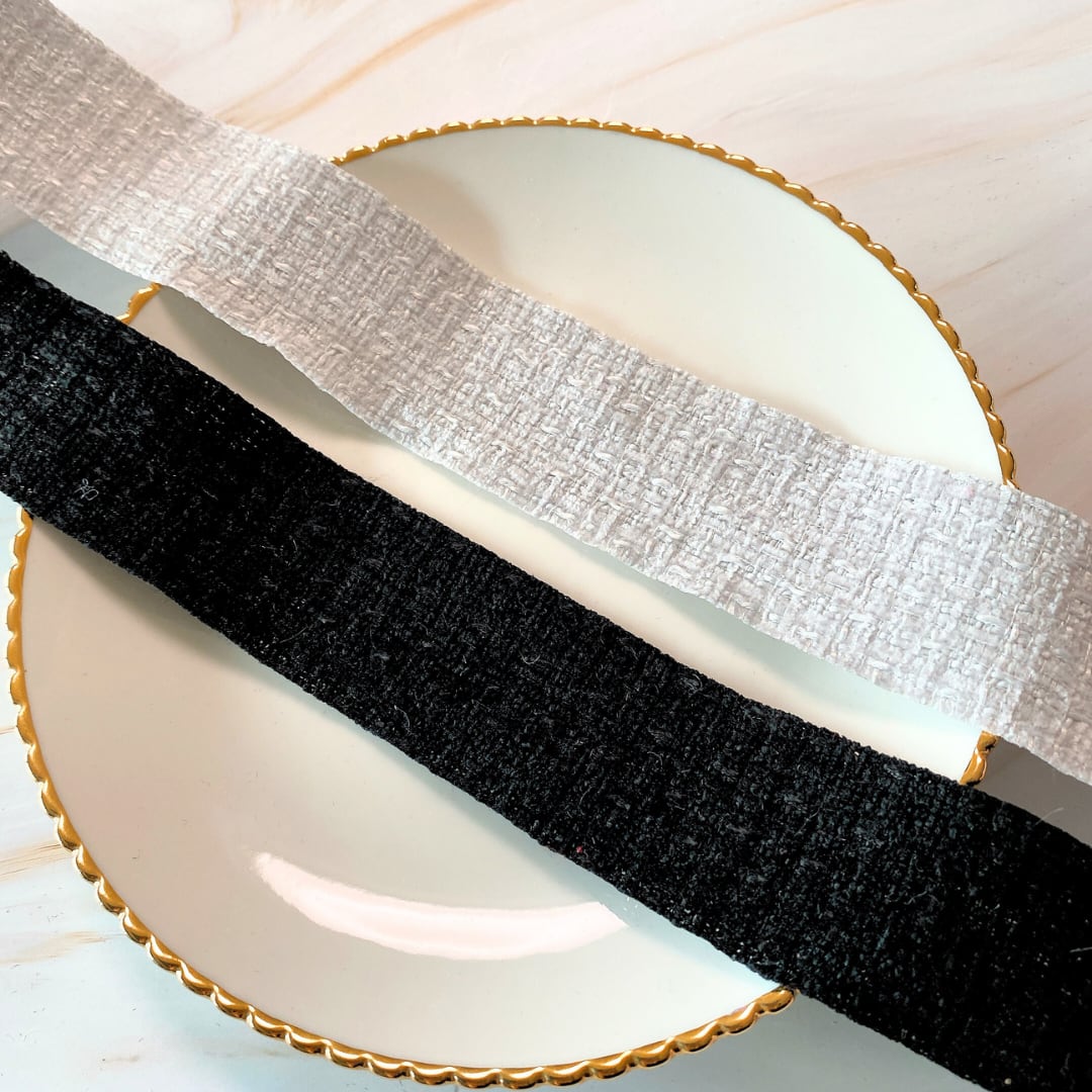 40mm幅 シェルグレー&ブラック 大人color ツイード リボン