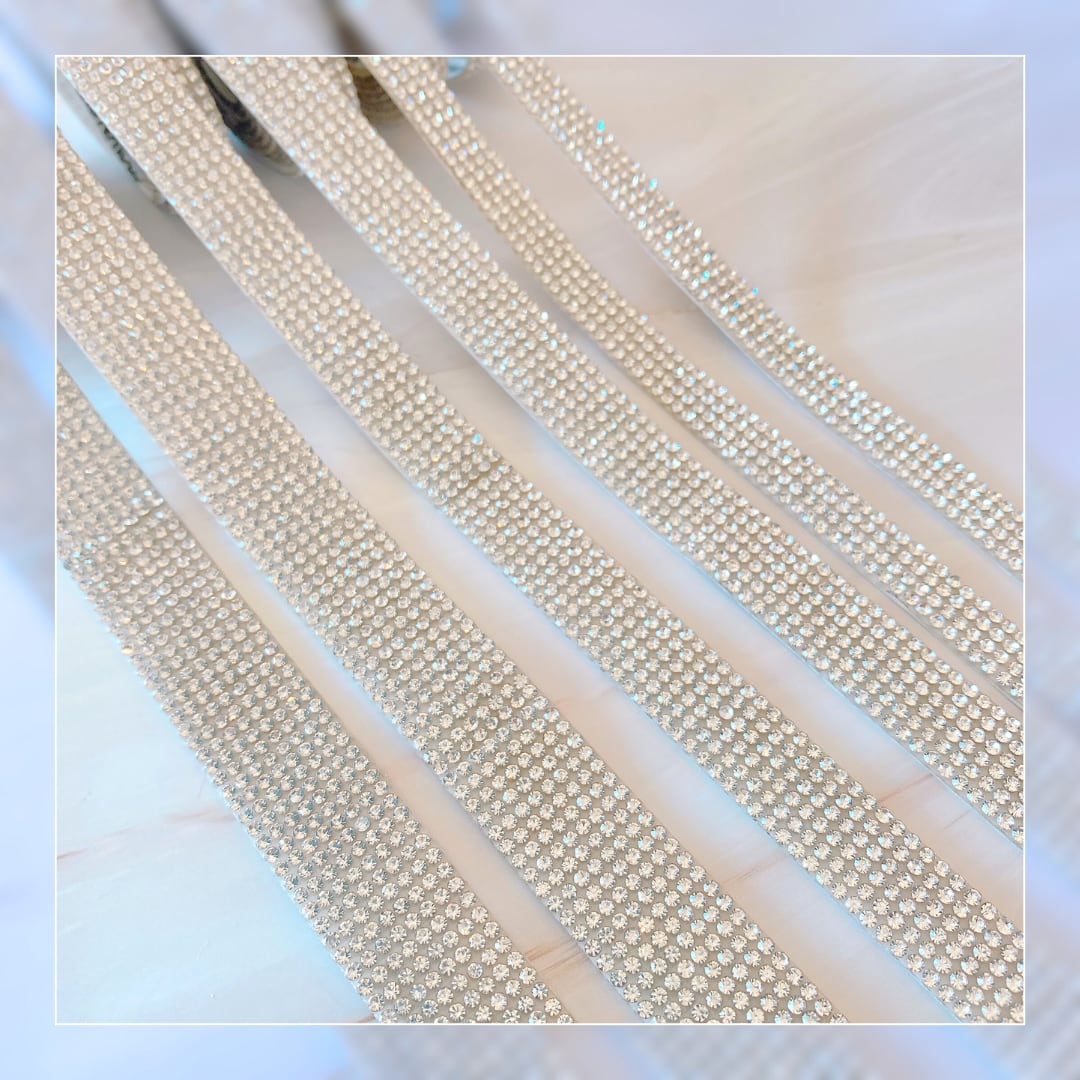 アイロン不要!★20cm単位販売★9mm幅 超強力粘着テープ ラインストーンテープ 4列 ブレード