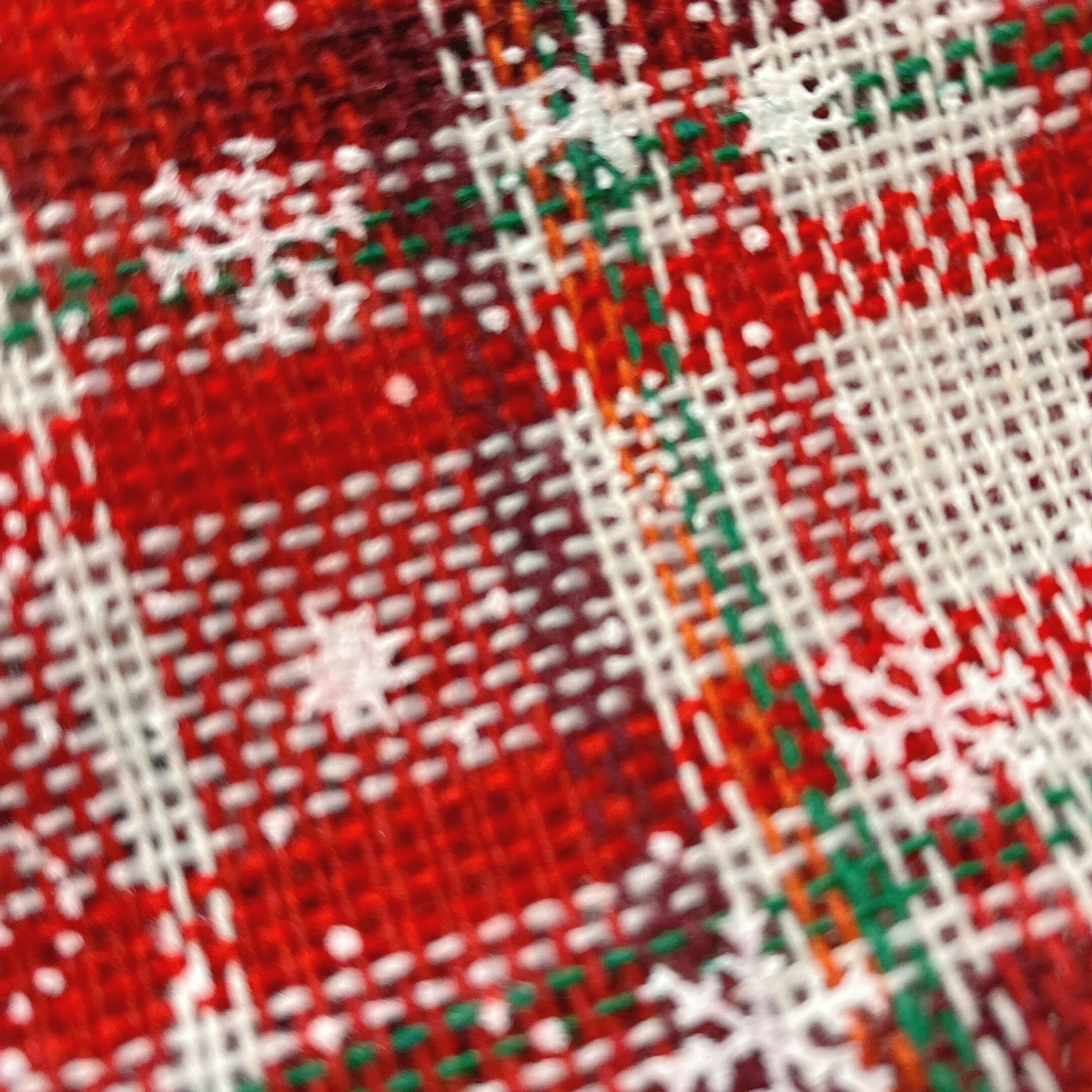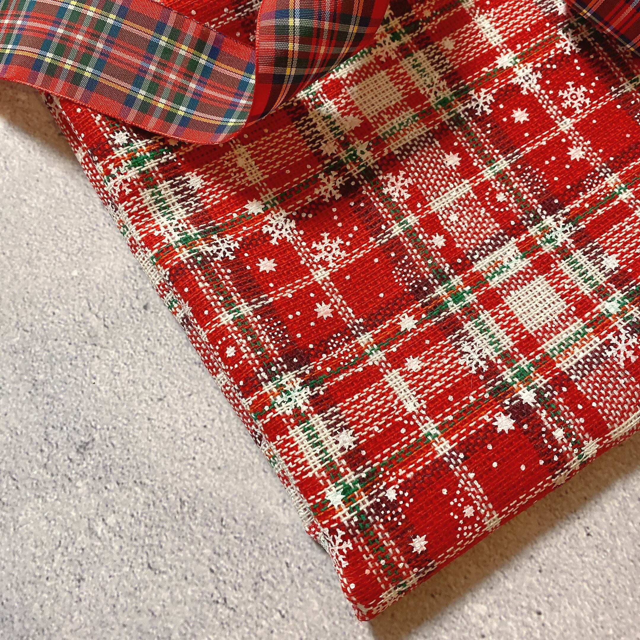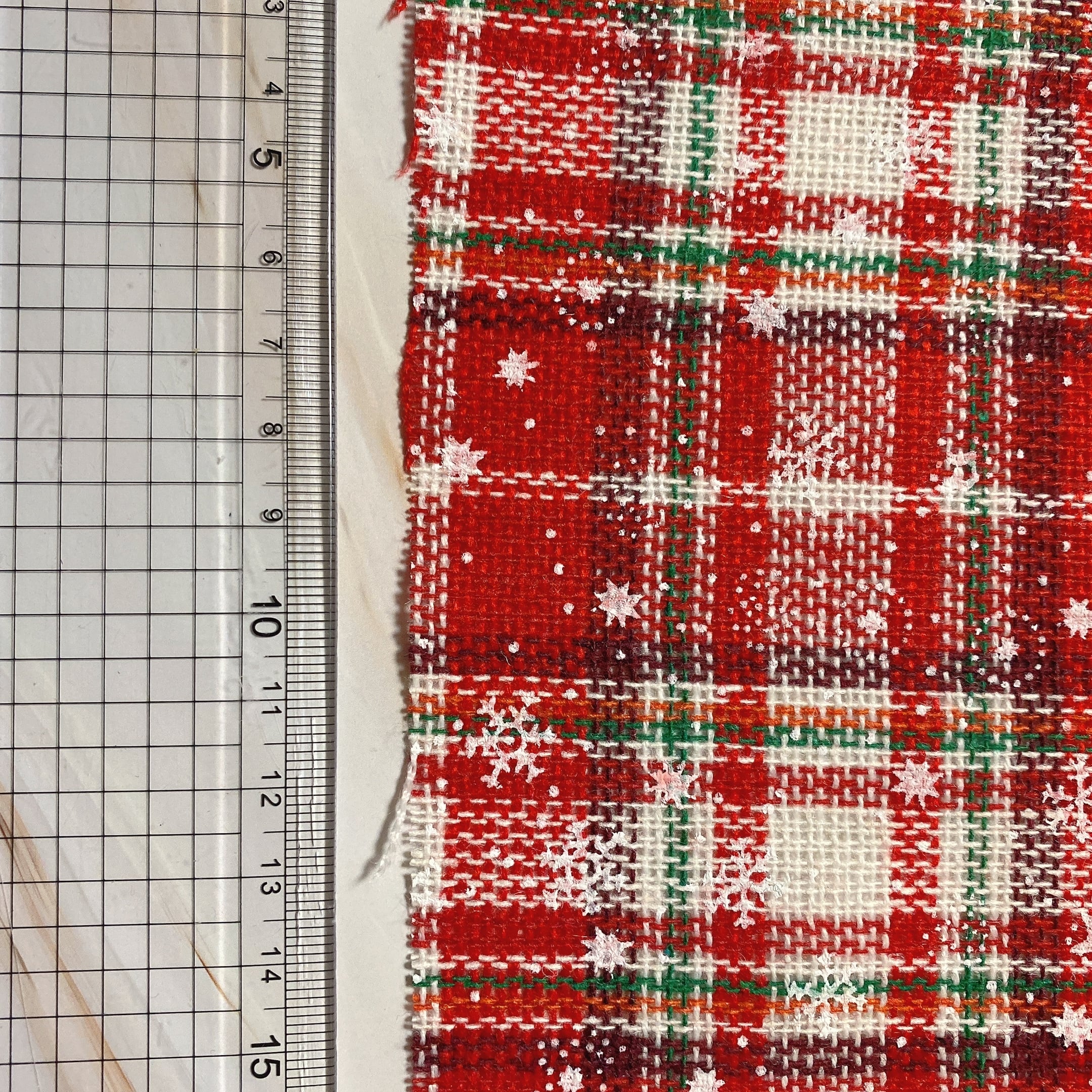 【約48x70cm 】赤チェック 雪の結晶 クリスマス 生地 コットンリネン
