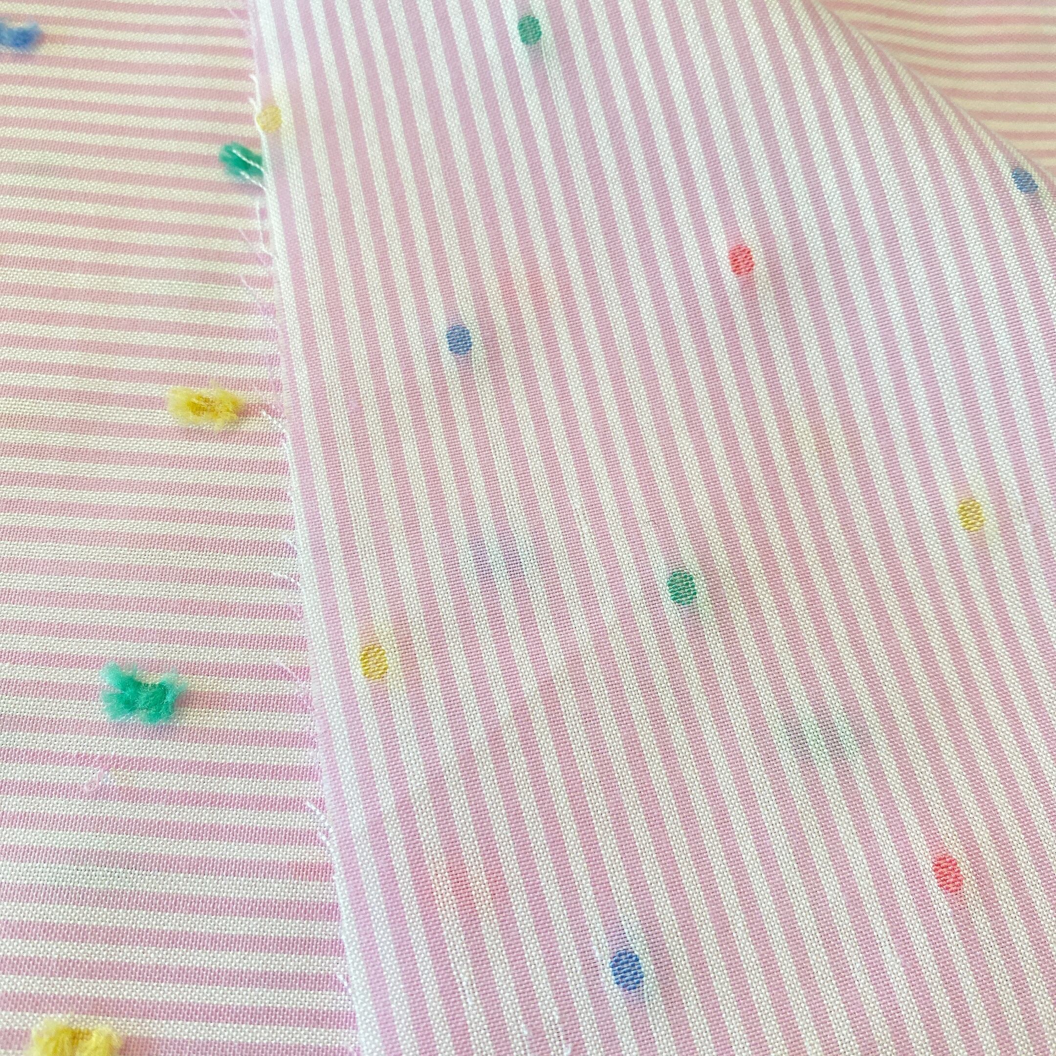 ストライプ柄に、カットフラワーのような立体的な起毛ドットが入った