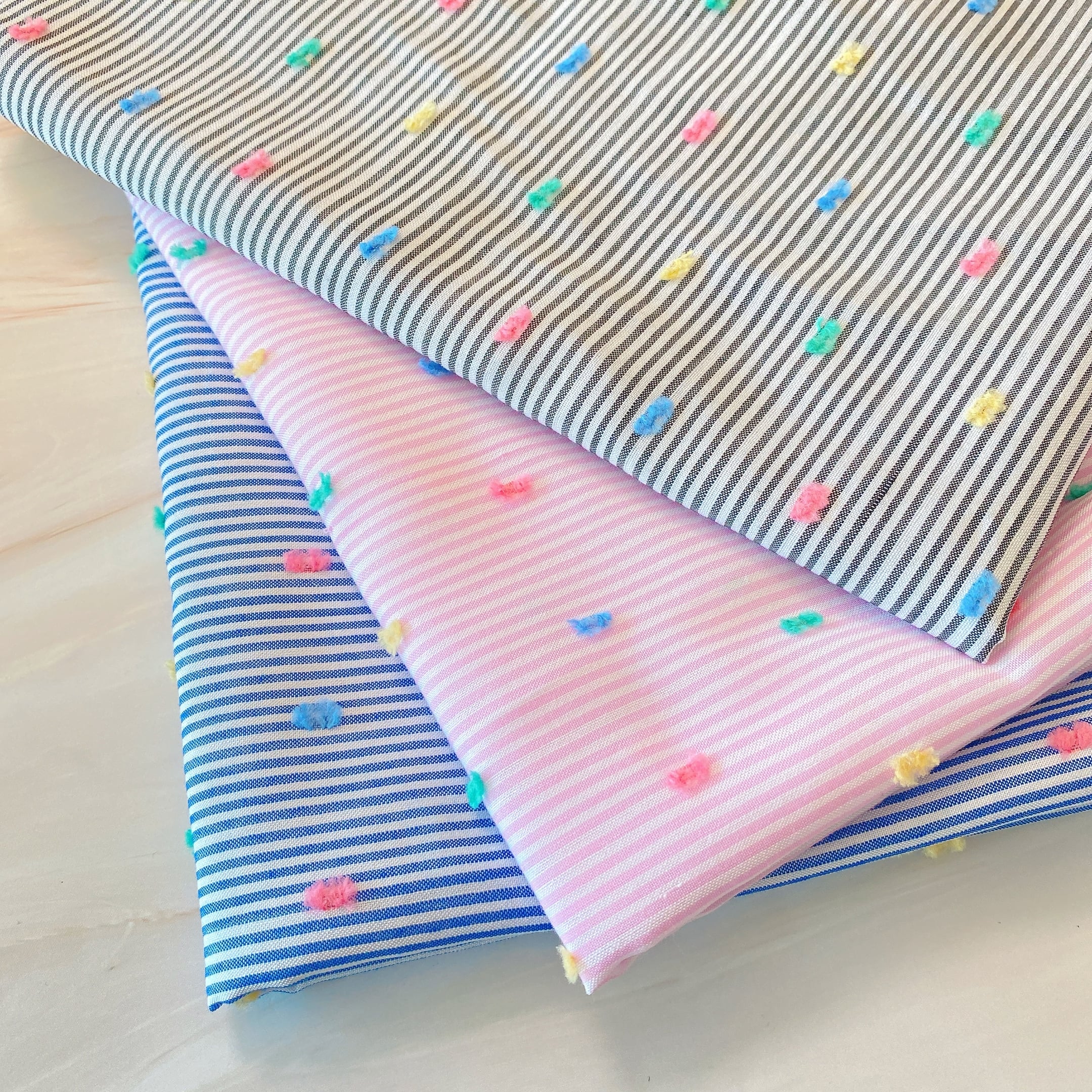 【約48x140cm 】ストライプ柄 ジャガード生地 3色|立体ドット