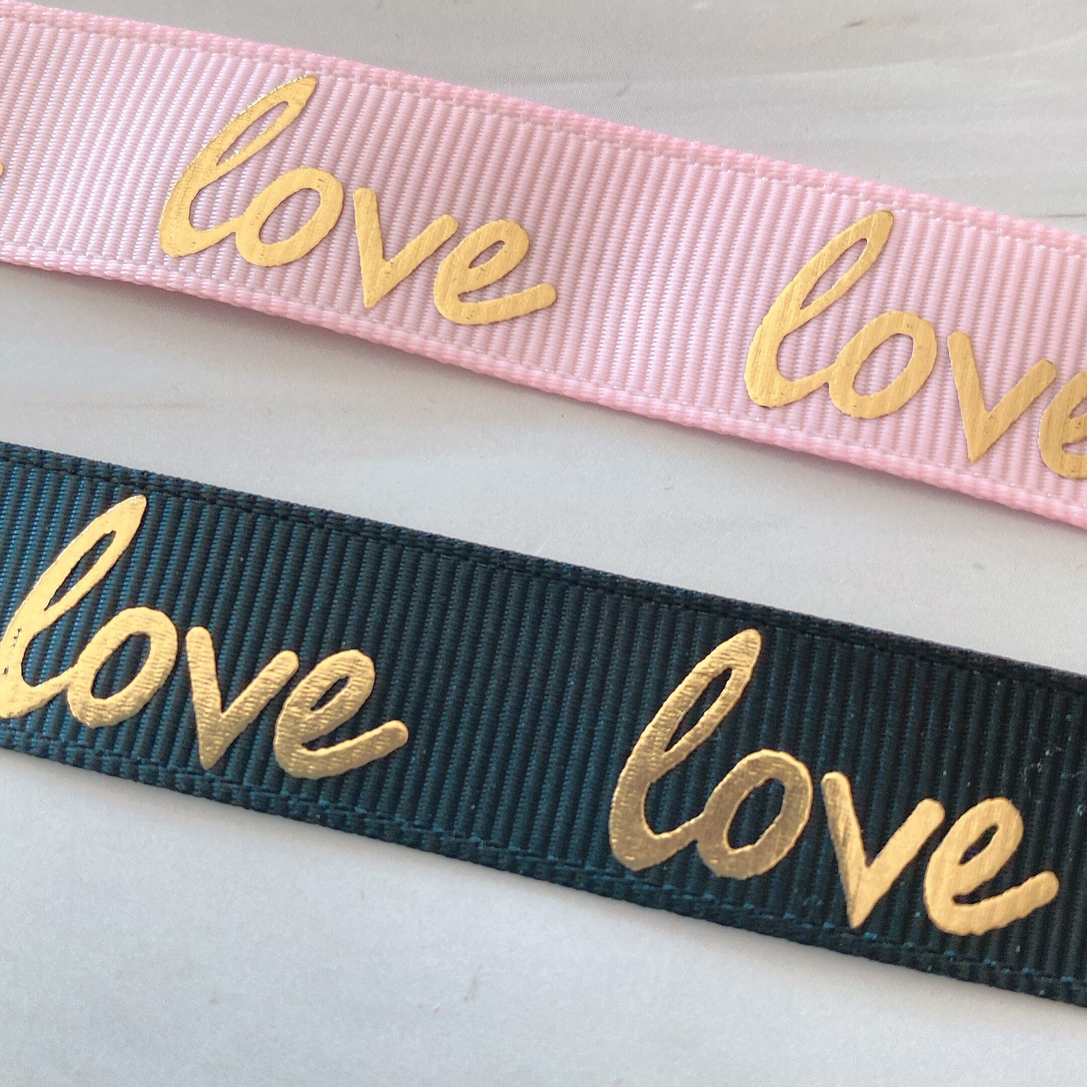 16mm幅 LOVEロゴ ゴールド箔押し グログランリボン