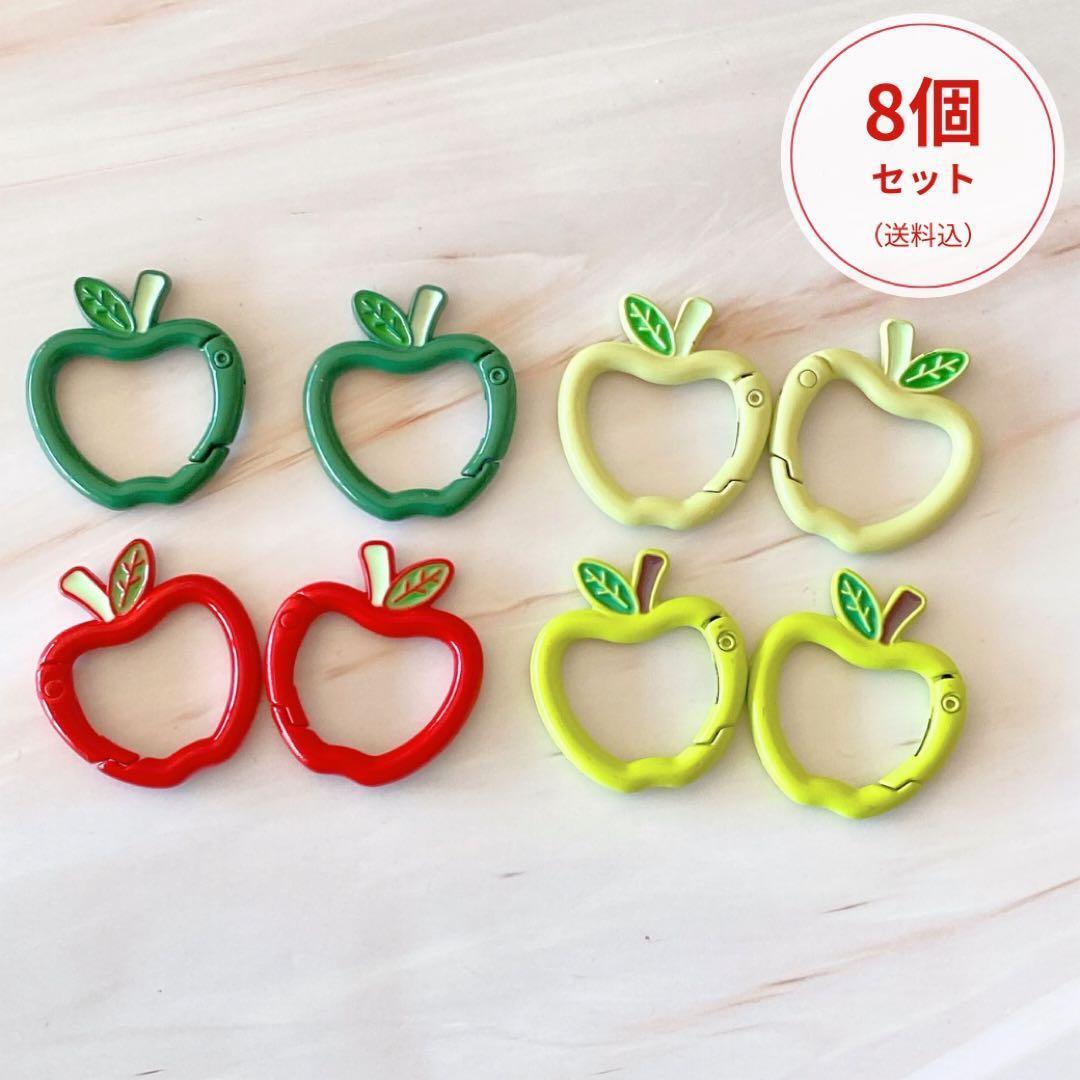 【セット内容】 りんごカラビナ 4色 × 各2個(合計8個)