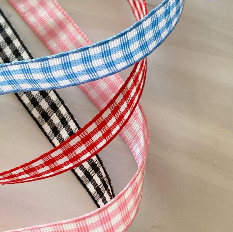 【まとめ売り ロール販売 1m/約18円】10mm幅 約21mロール ギンガムチェックリボン ファブリックリボン
