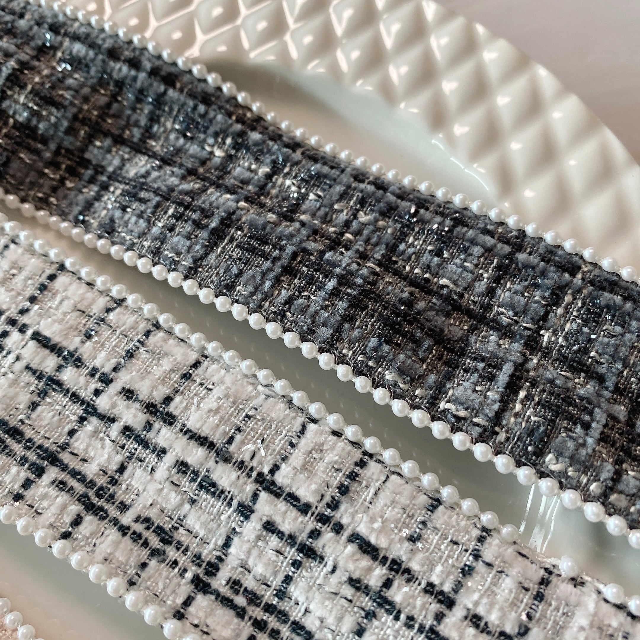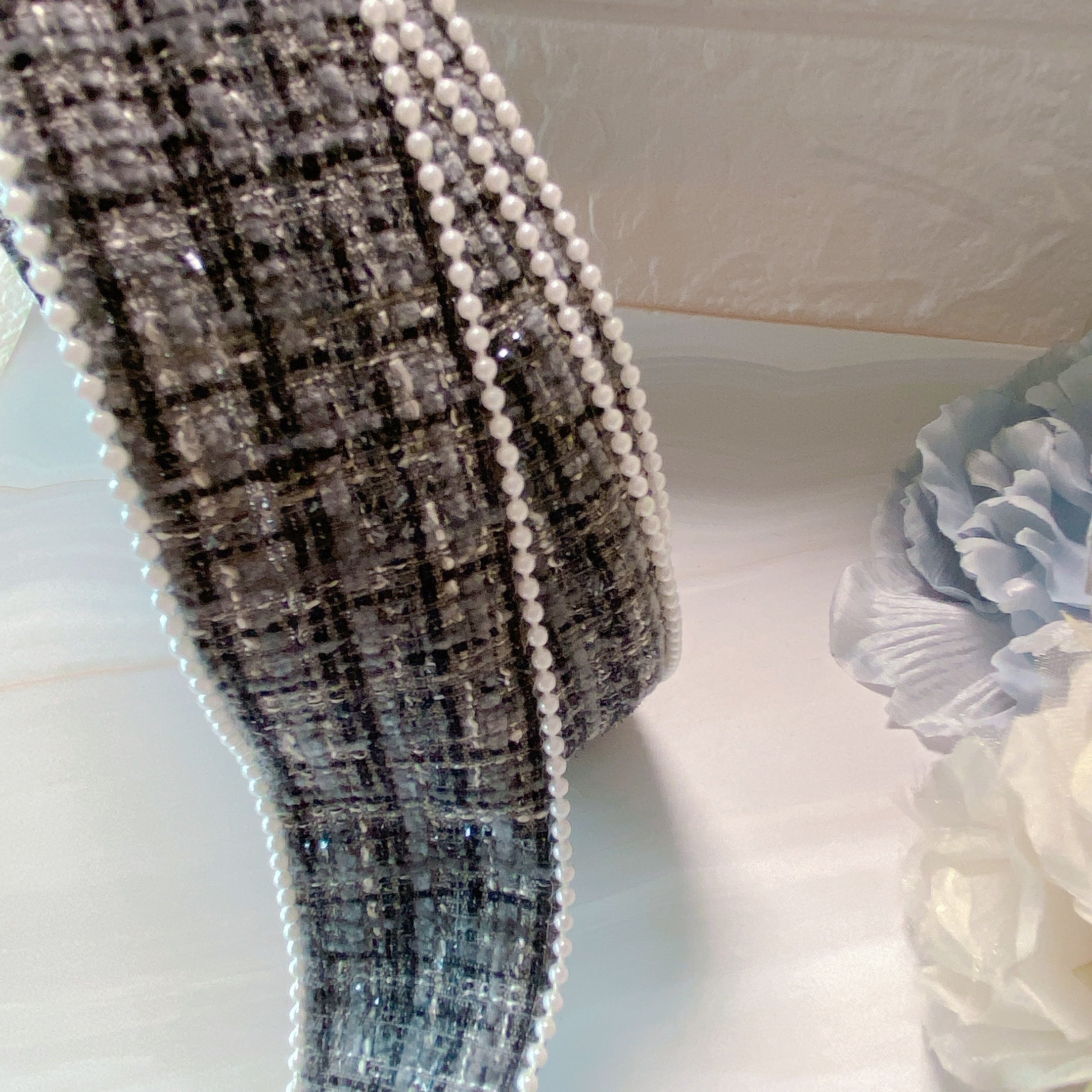 上品なツイード生地とパールでシンプルな形でも高見えするリボンです!