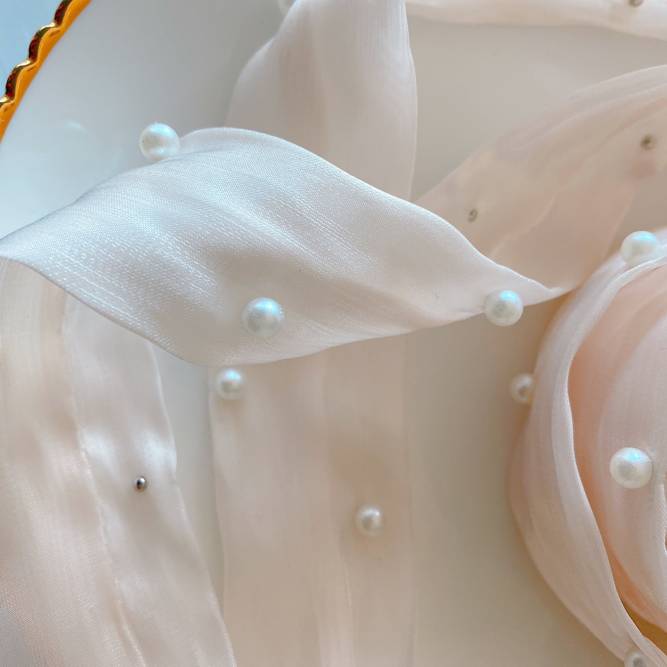 パールがあしらわれた上品なカラーのオーガンジーリボンです