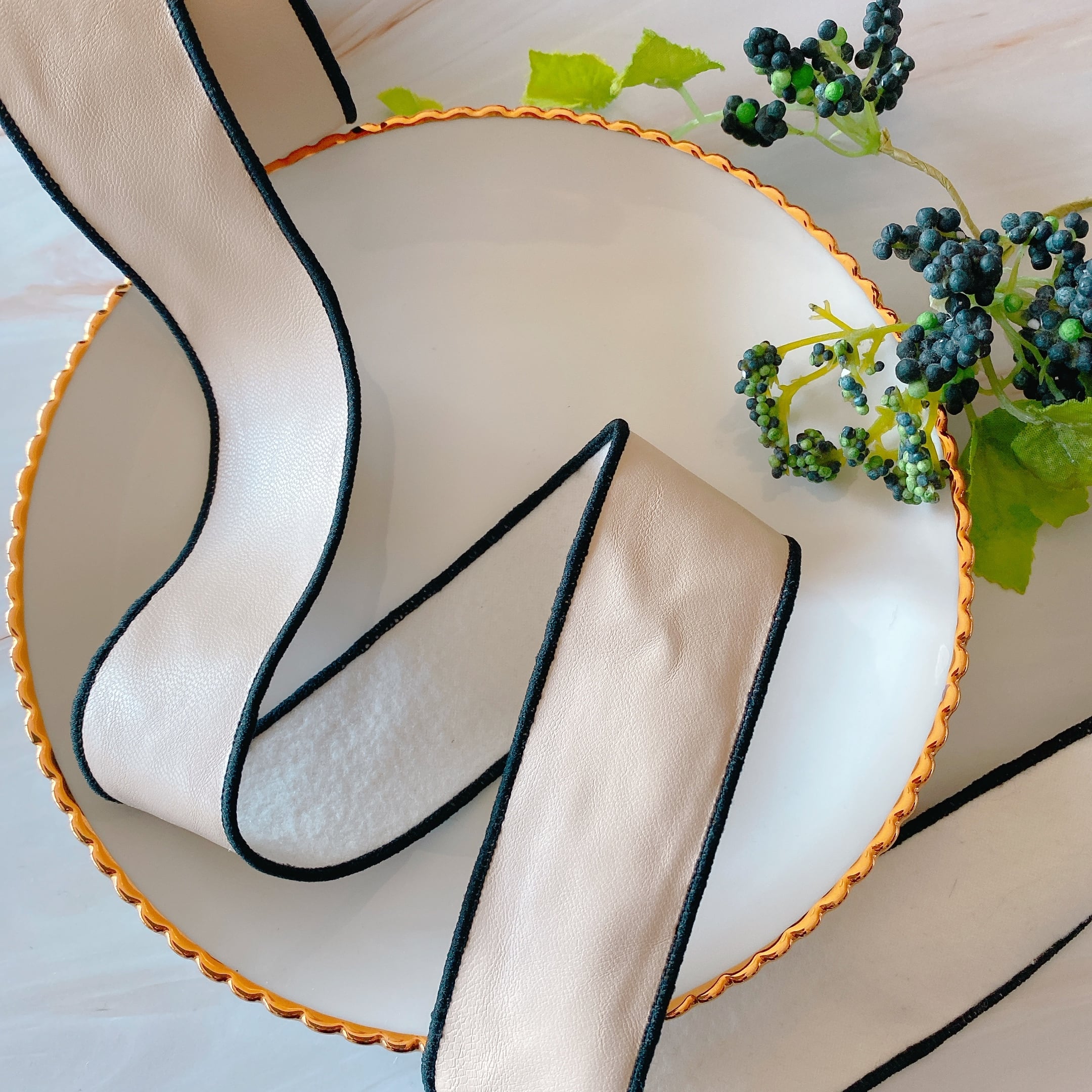 ★SALE 30%OFF ★38mm幅 ブラックトリムエッジ フェイクレザーリボン