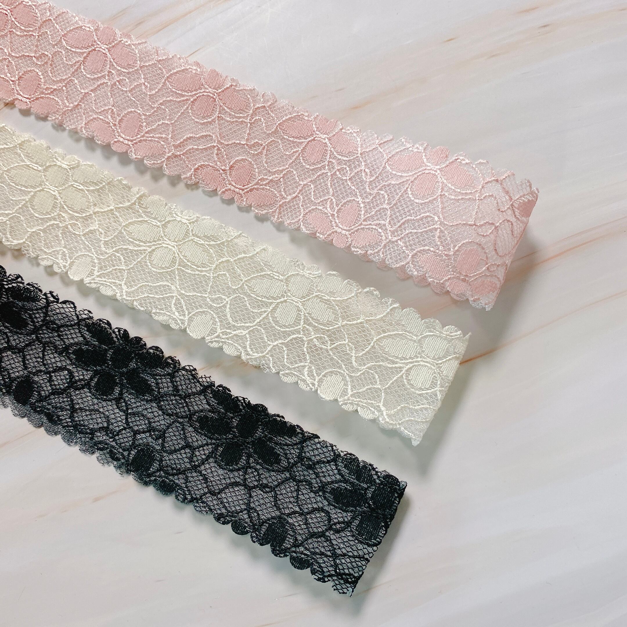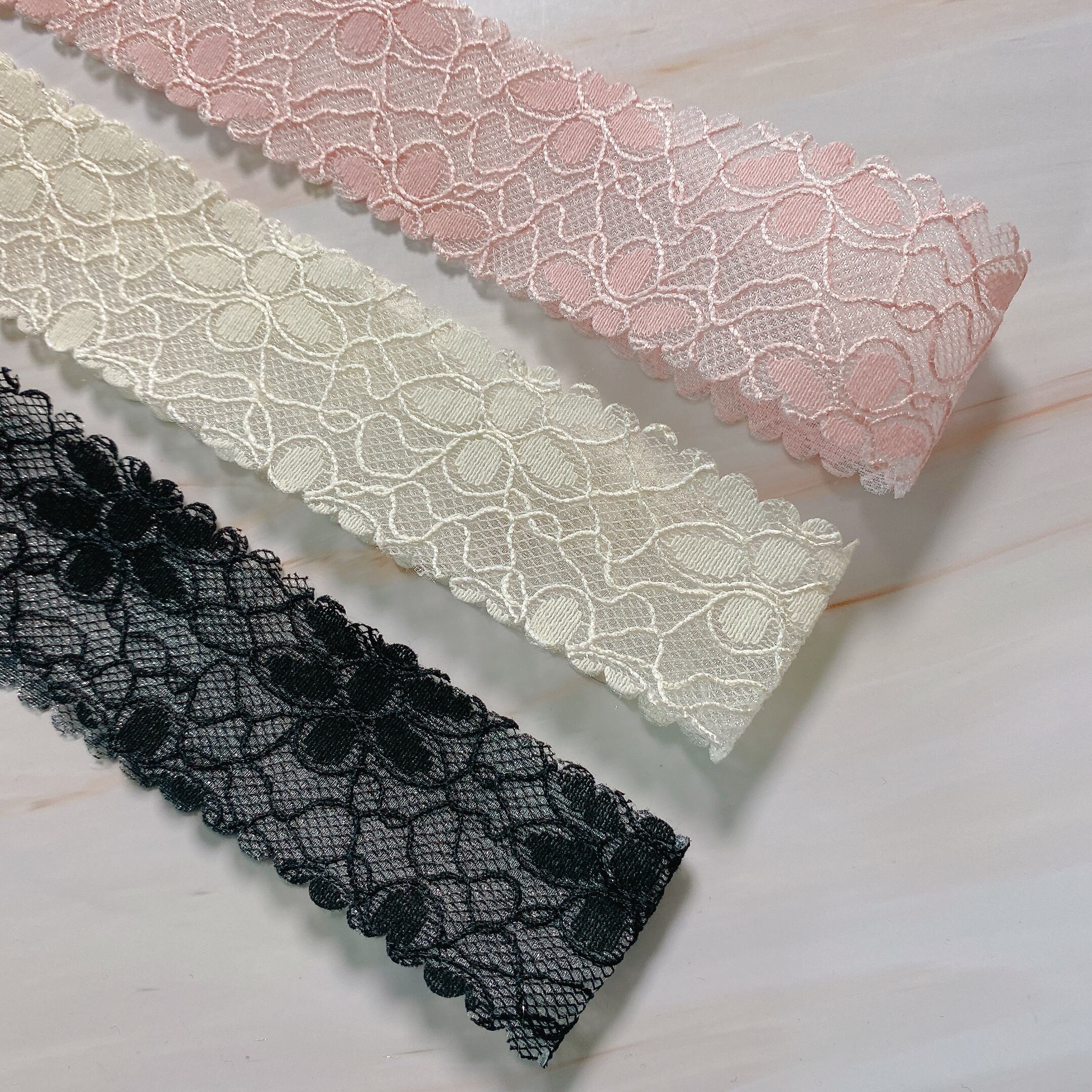 レース地にメッシュ生地を重ねたとってもキレイなレースリボンです♡