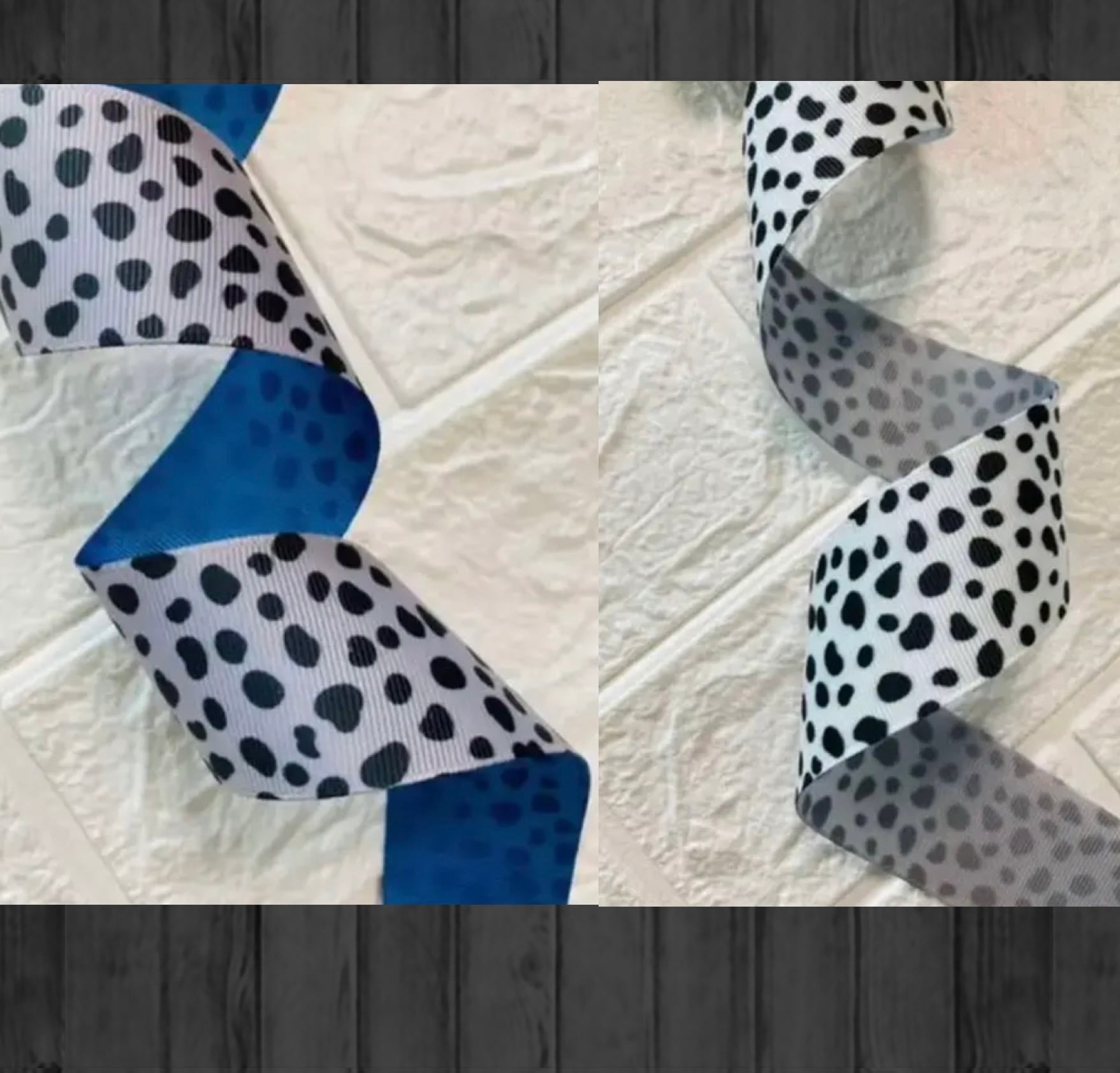 38mm幅 両面 小さめダルメシアン柄 グログランリボン ダルメシアン