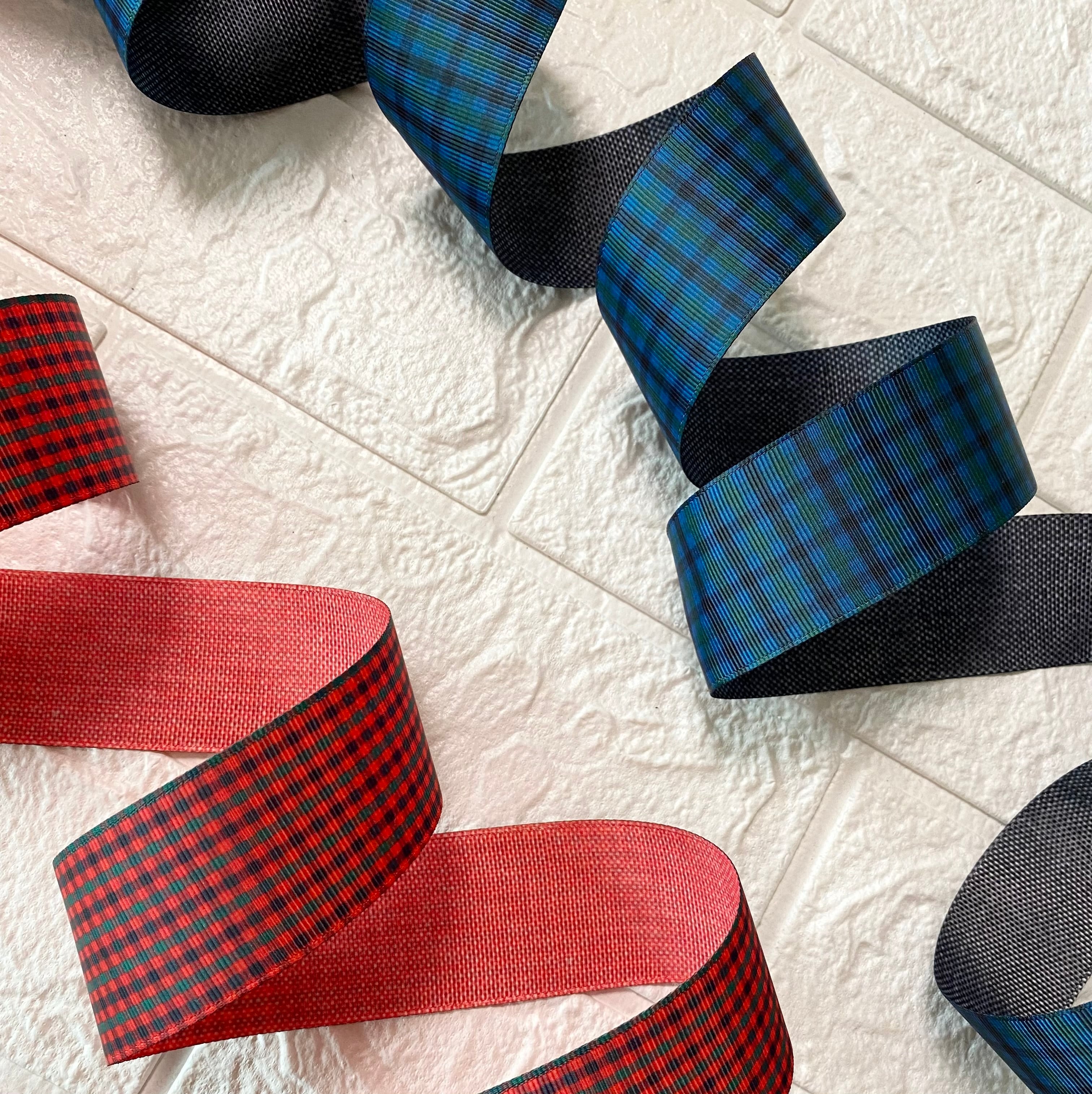38mm幅 両面 チェック 赤緑 青緑 グログランリボン