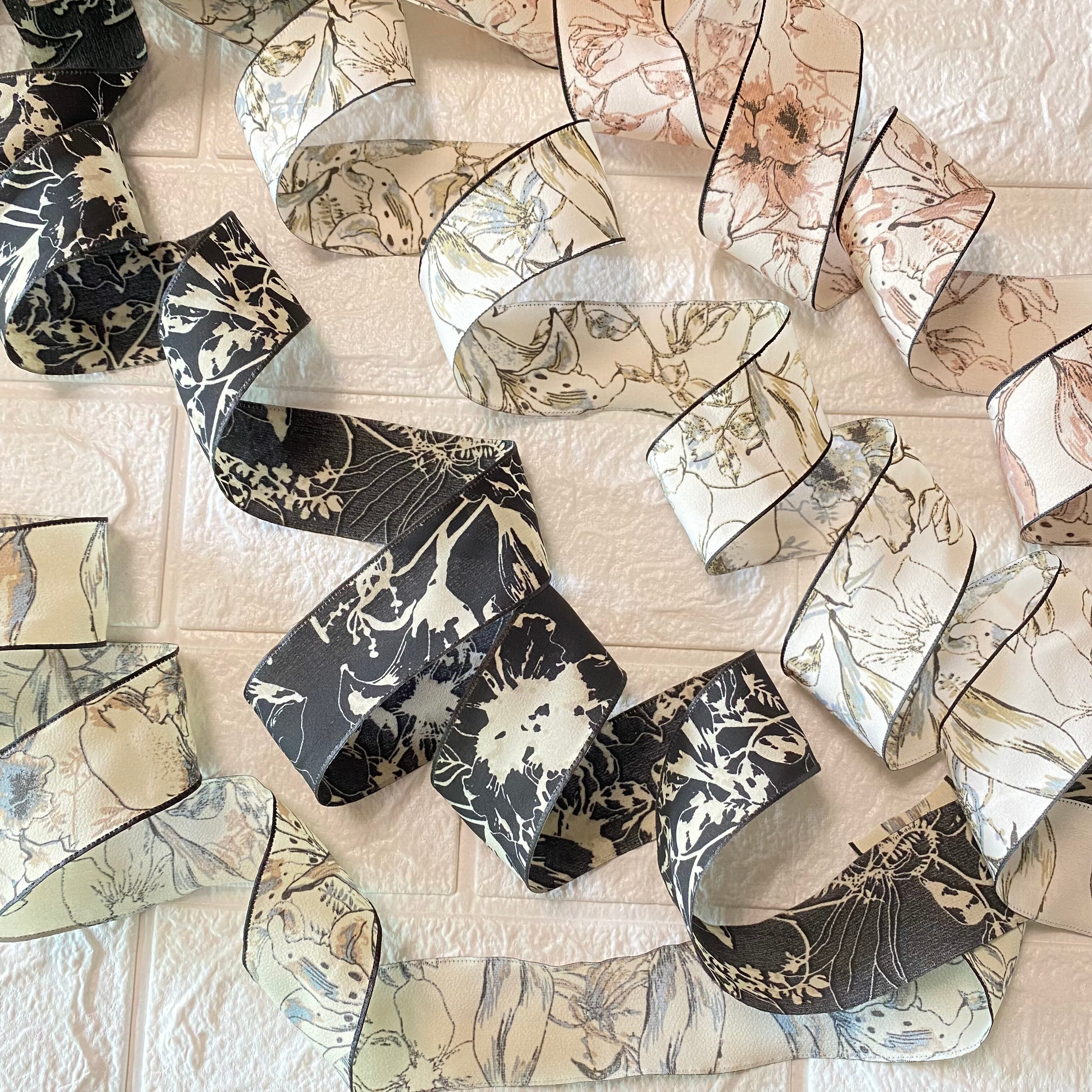 38mm 線画花柄 ファブリック シフォンリボン 4種