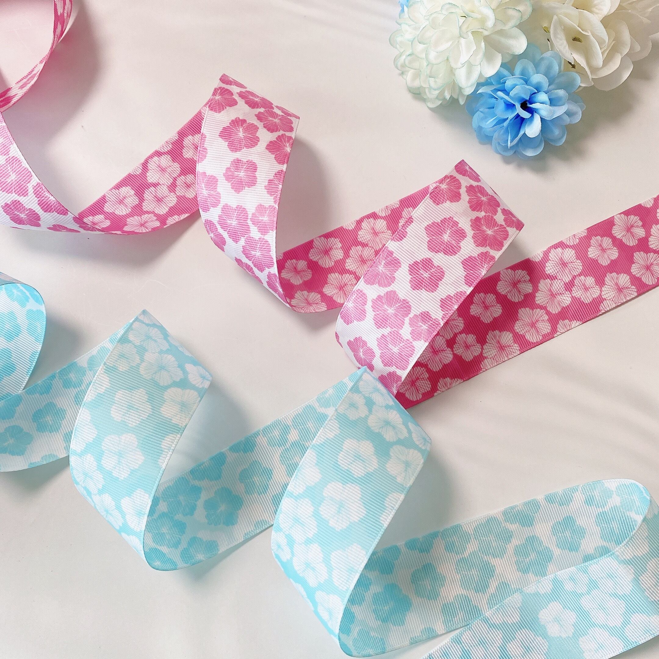 38mm 両面 ハイビスカス 総柄 グログランリボン
