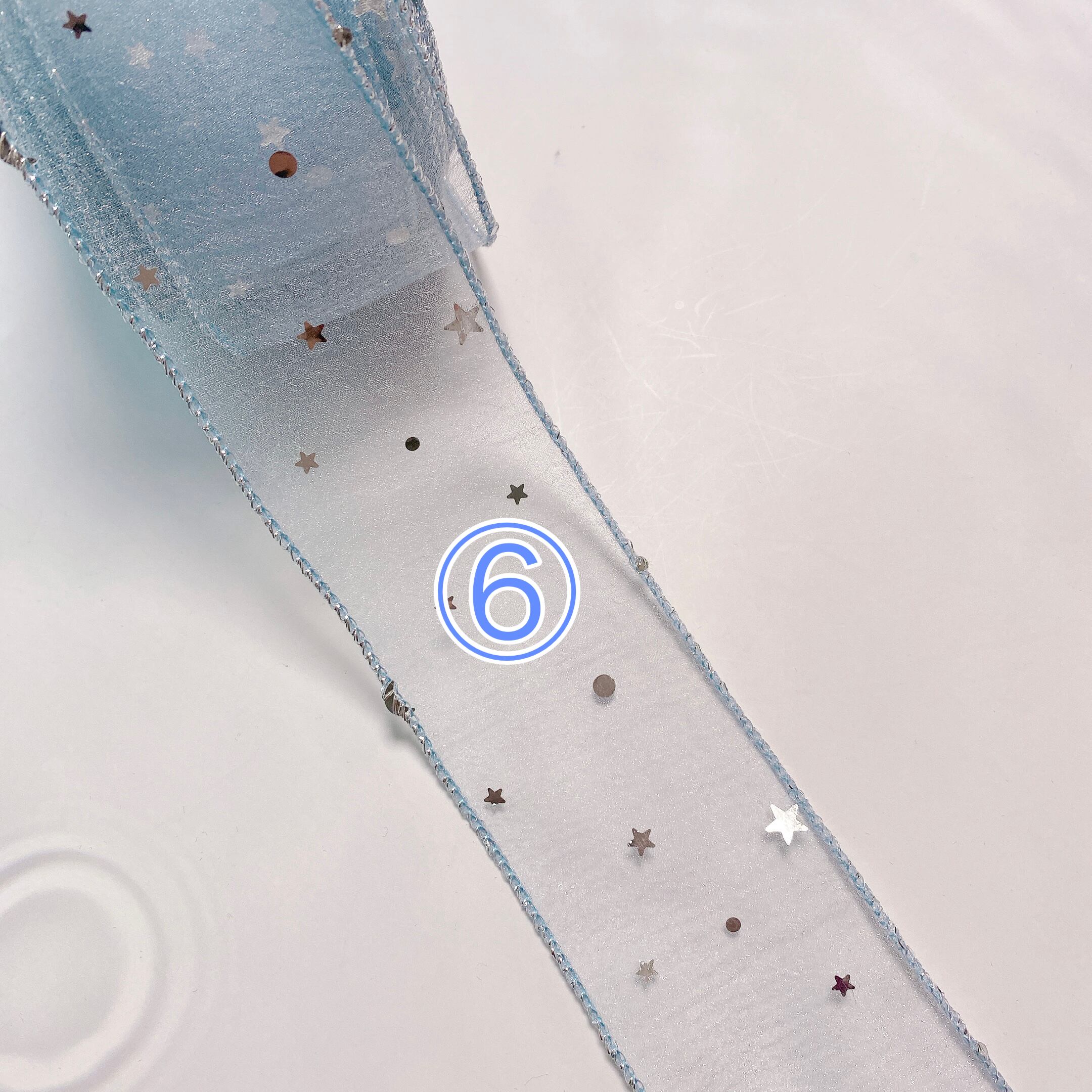 ⭐️新色追加(水色)⭐️ 50mm幅 シルバースター&ムーン テグス入り オーガンジーリボン