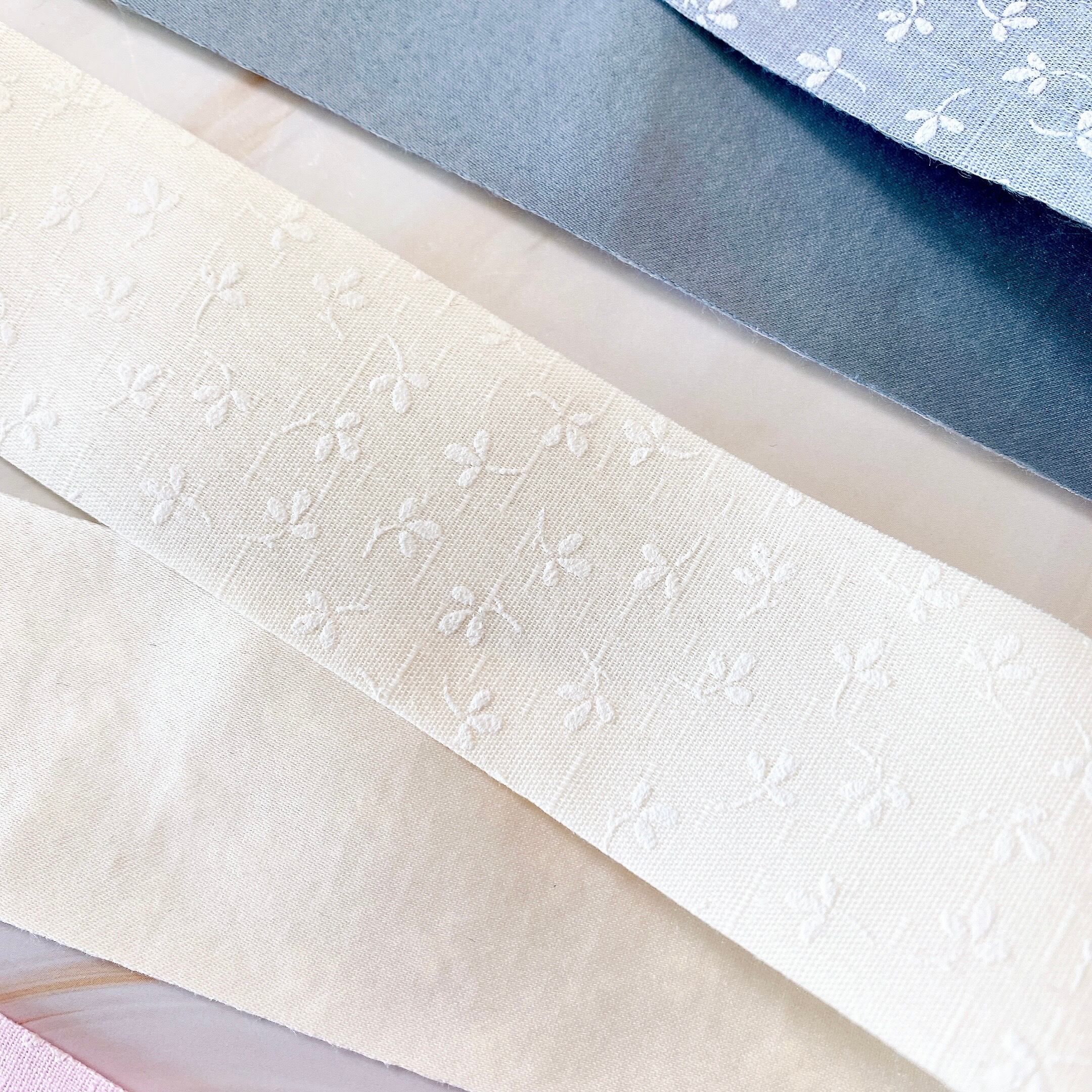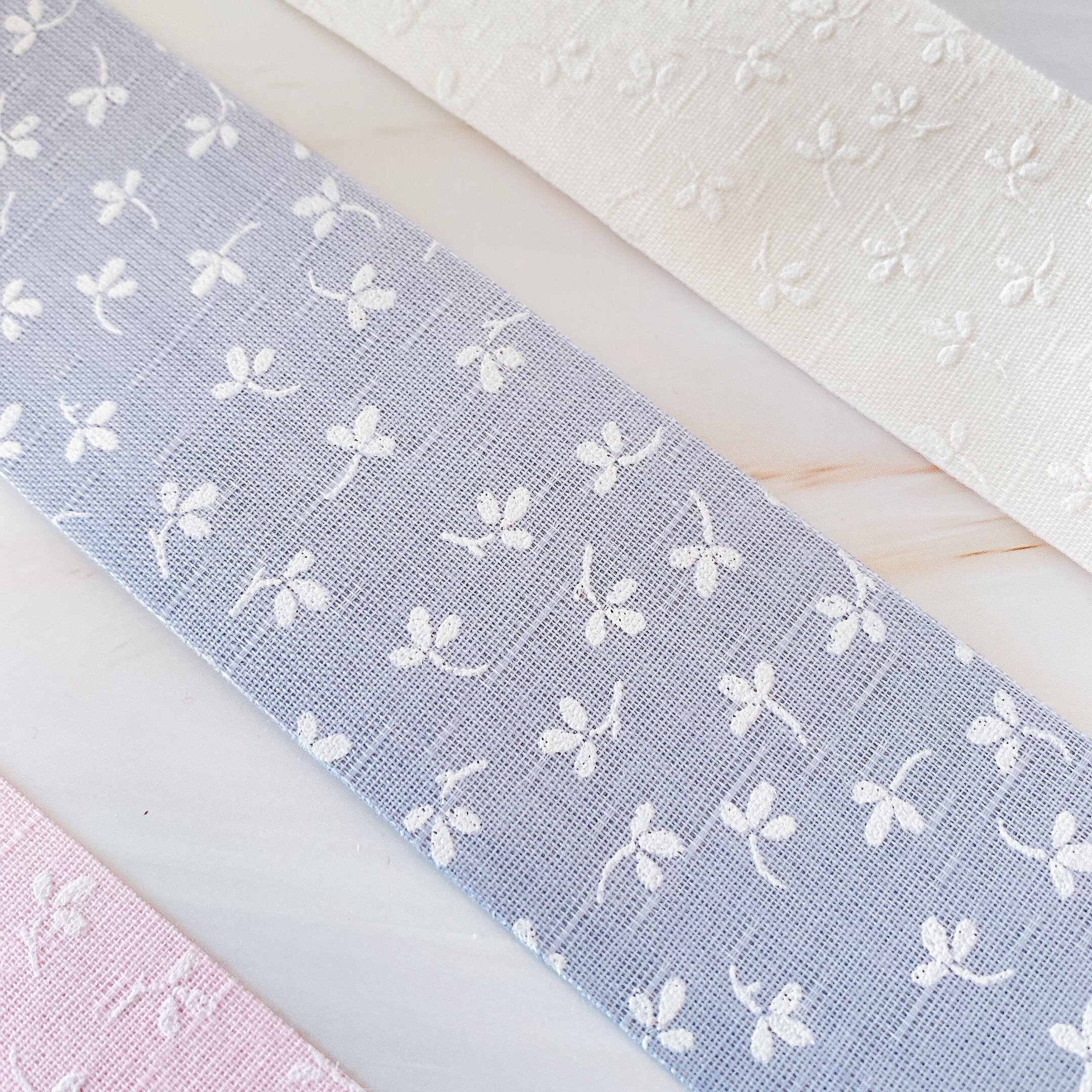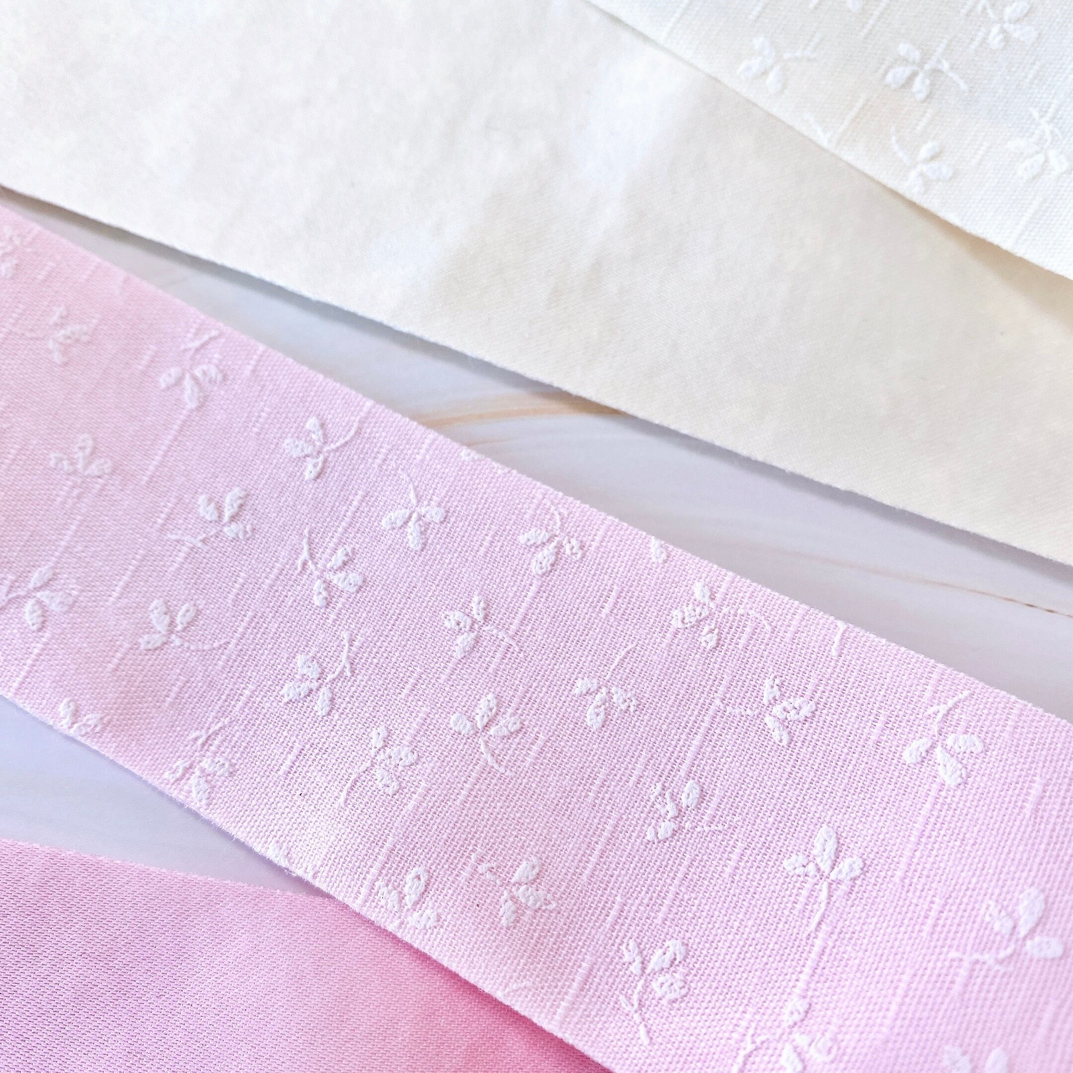 優しい色味に白い小花柄がとても上品で可愛らしいリボンです。
