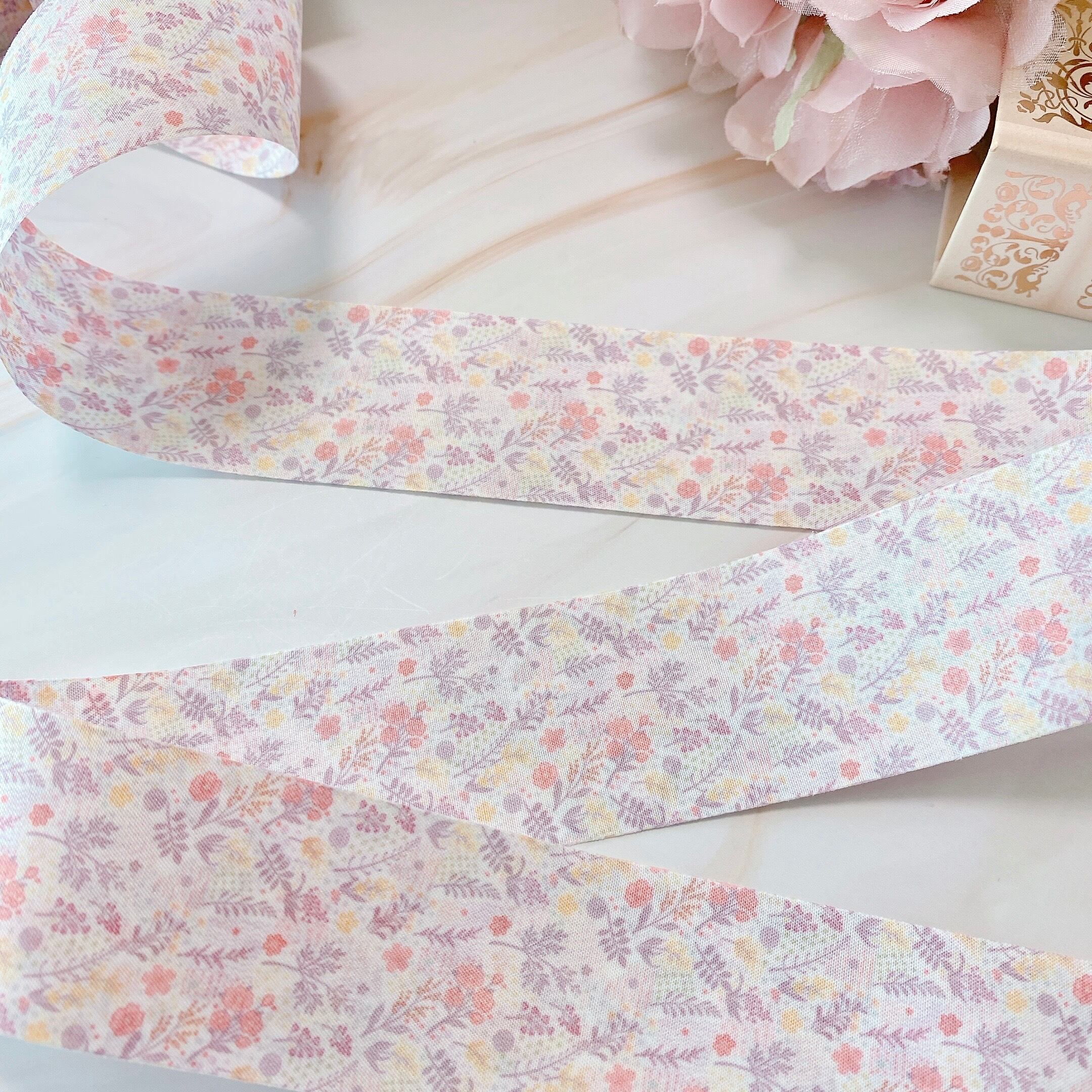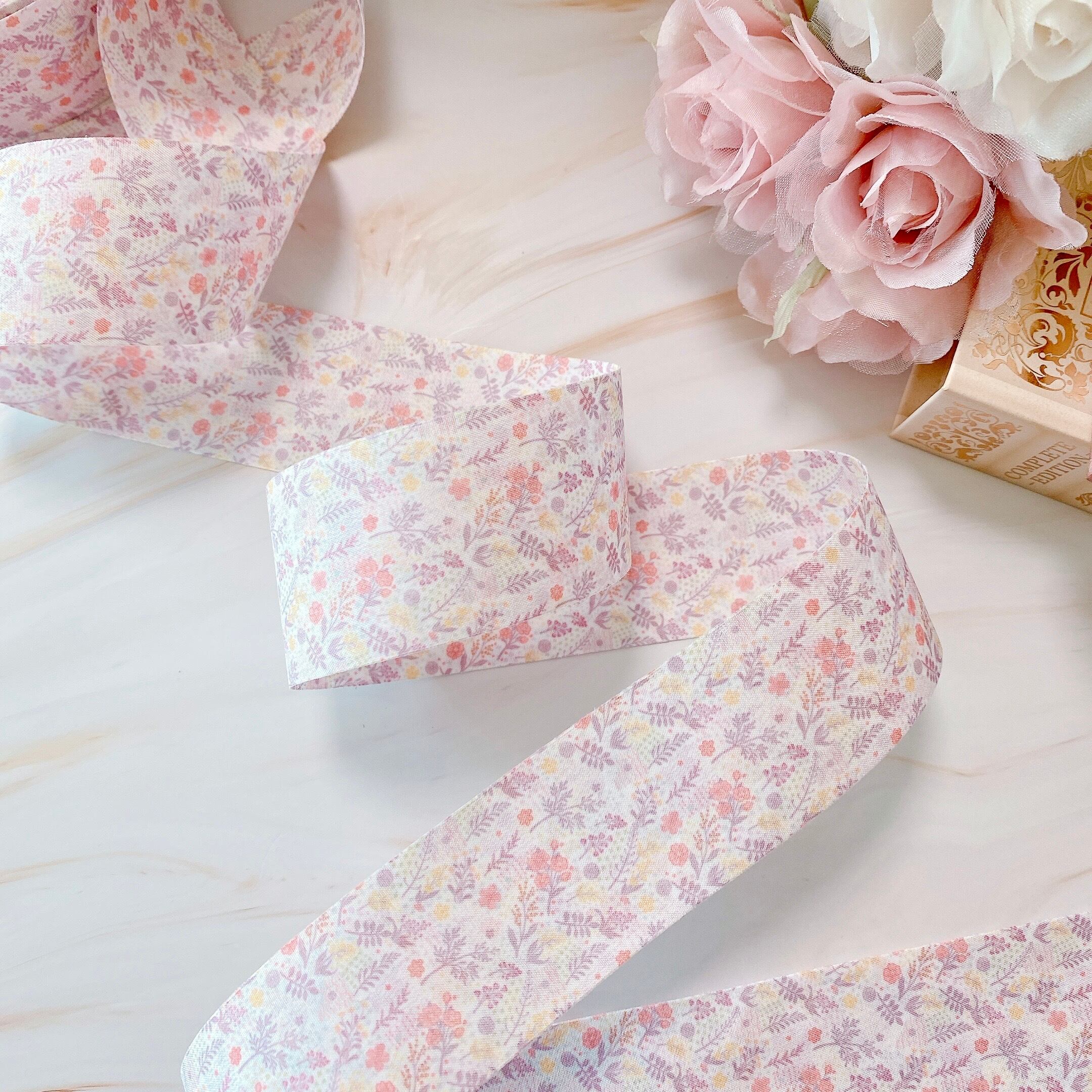 40mm幅 くすみピンク系 小花柄 ファブリックリボン