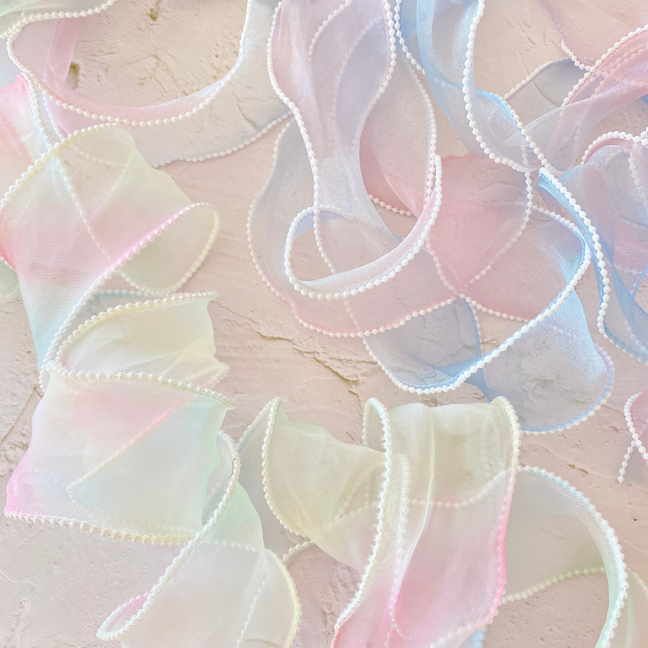 約60〜70mm幅 グラデーション サイドパール オーガンジーリボン