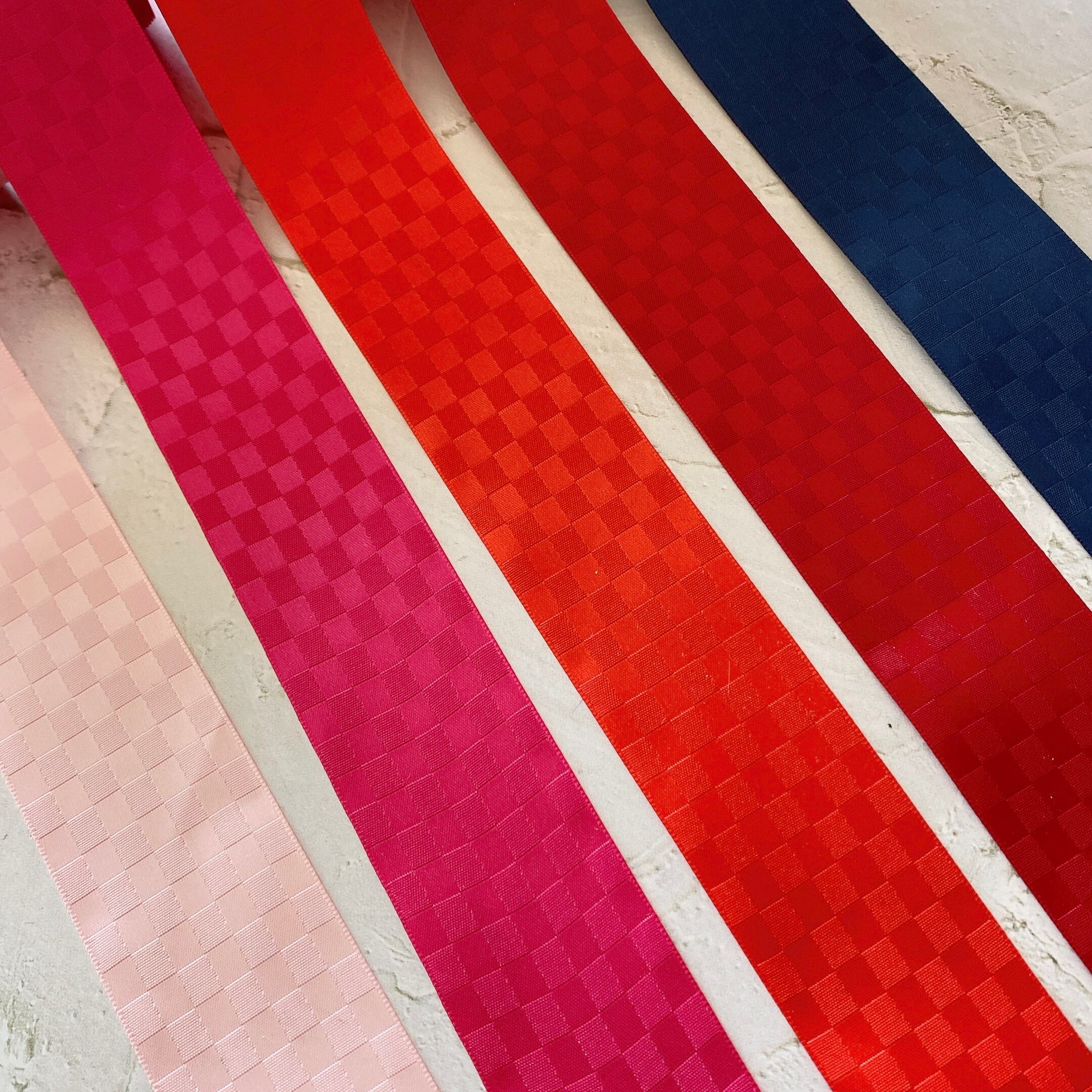 38mm幅 両面 ブロックチェック柄 サテンリボン