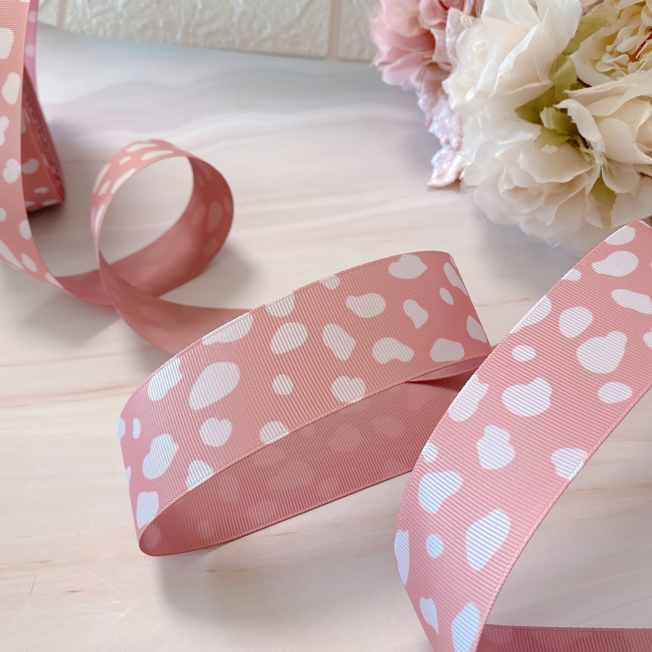 ...New color... 38mm 両面ダルメシアン ピンクベージュ グログランリボン