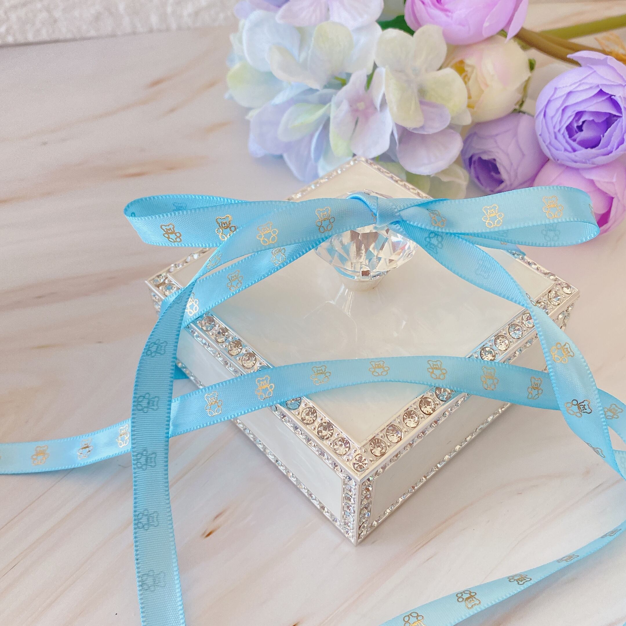 パステルブルーに箔押しクマちゃんがかわいいリボン。