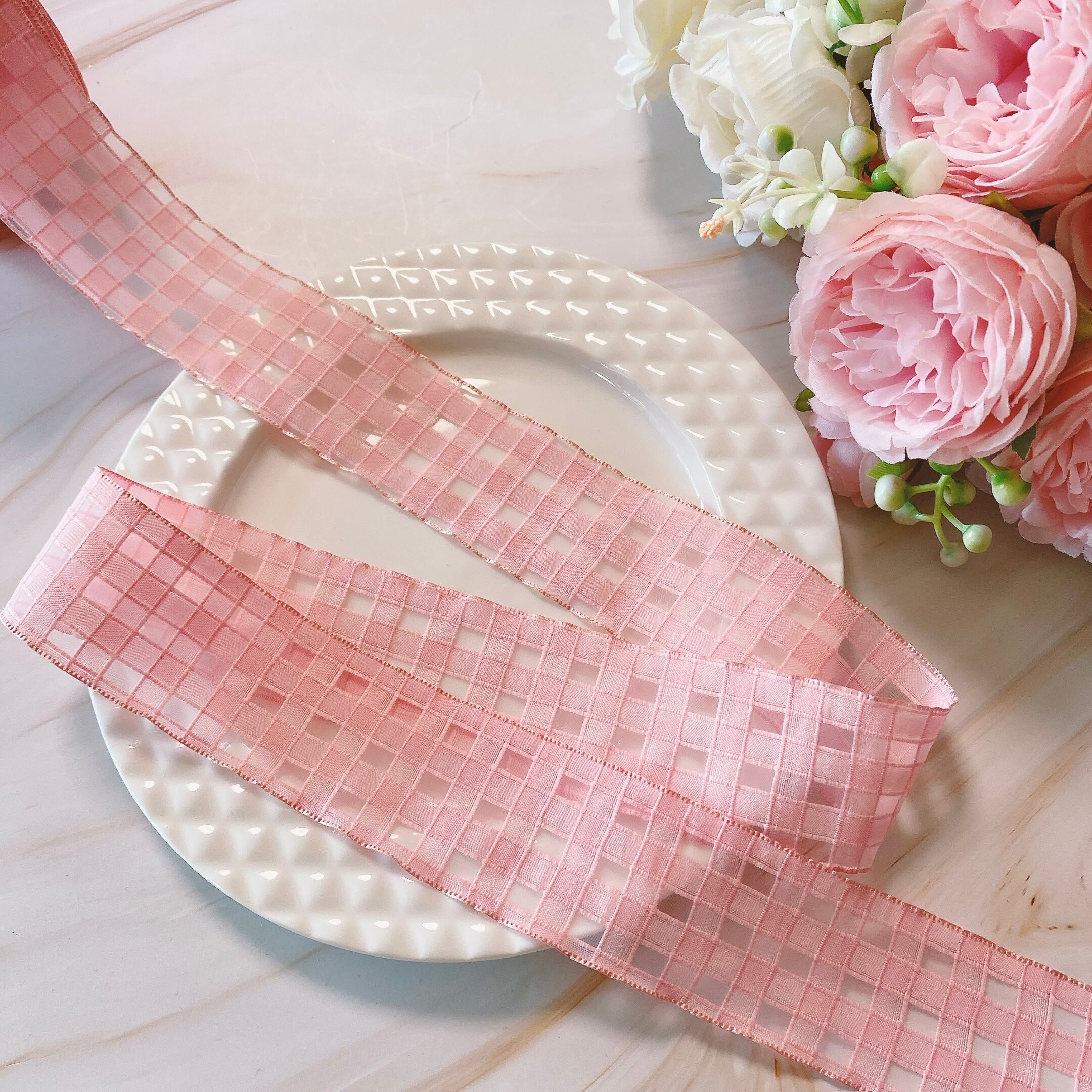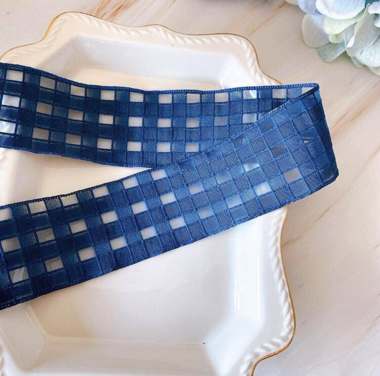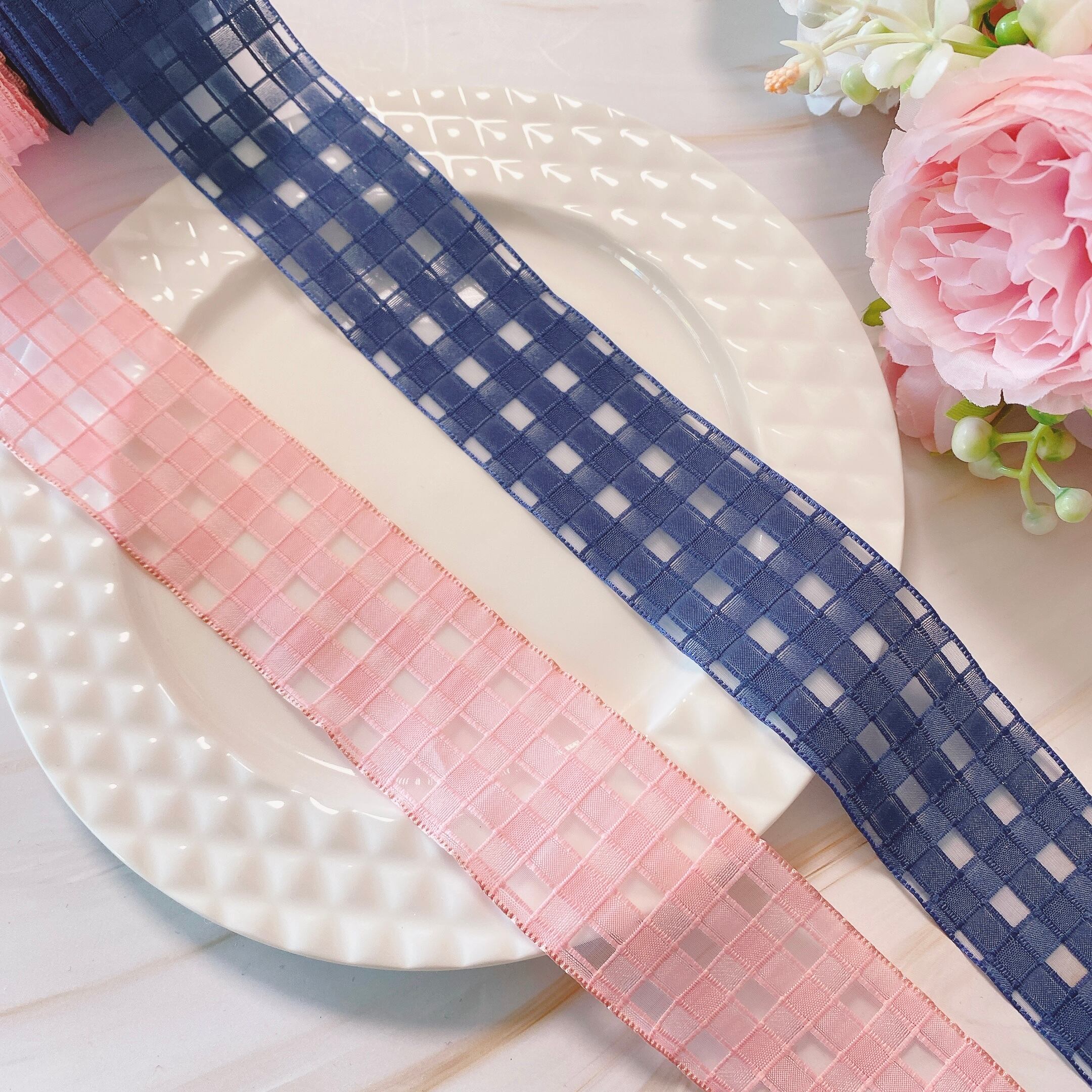 チェック柄のシースルーリボンです。